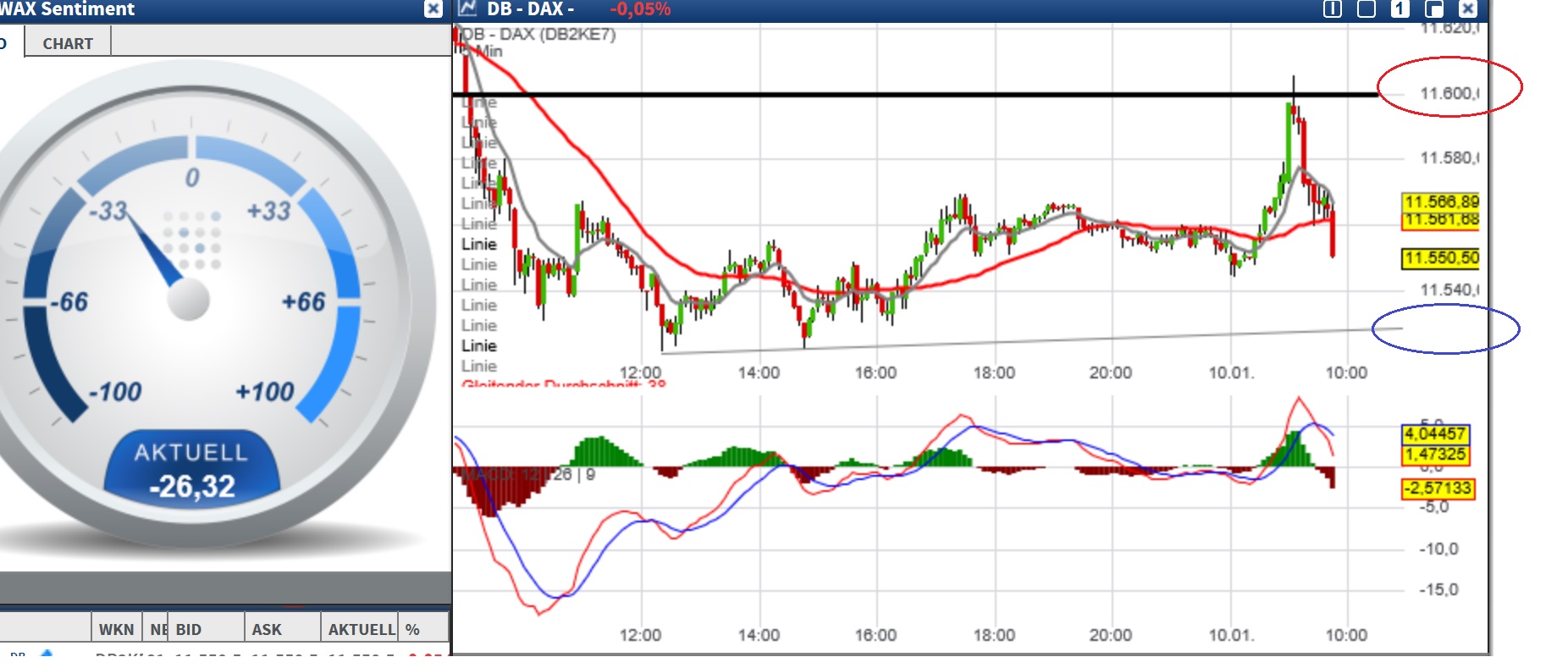 Ich finde viele Privatanleger machen sich das zu kompliziert. Schaut einfach auf den daily-Chart. Sind dort faktisch klar erkennbare Shortsignale zu sehen ? Ich sehe keine Verkaufssignale. Ich sehe nur, dass seit einigen Tagen der Bereich 11525 hält. Hier richtet sich der Dax gerade einen fruchtbaren Boden her. Mindestziel: 11800 / Idealzie 12500 in den nächsten Wochen. Ein Abtauchen unter die 11400 ist sogut wie ausgeschlossen. Sobald der Kurs dort (wenn überhaupt) ankommt, wird das Interesse der Anleger so groß sein, dass der Dax binnen kurzer Zeit wieder deutlich darüber notieren wird. Daher weiterhin meine Strategie: LONG bei Kursrückläufern. Bin wieder Long seit 11576 / Ziel 11626