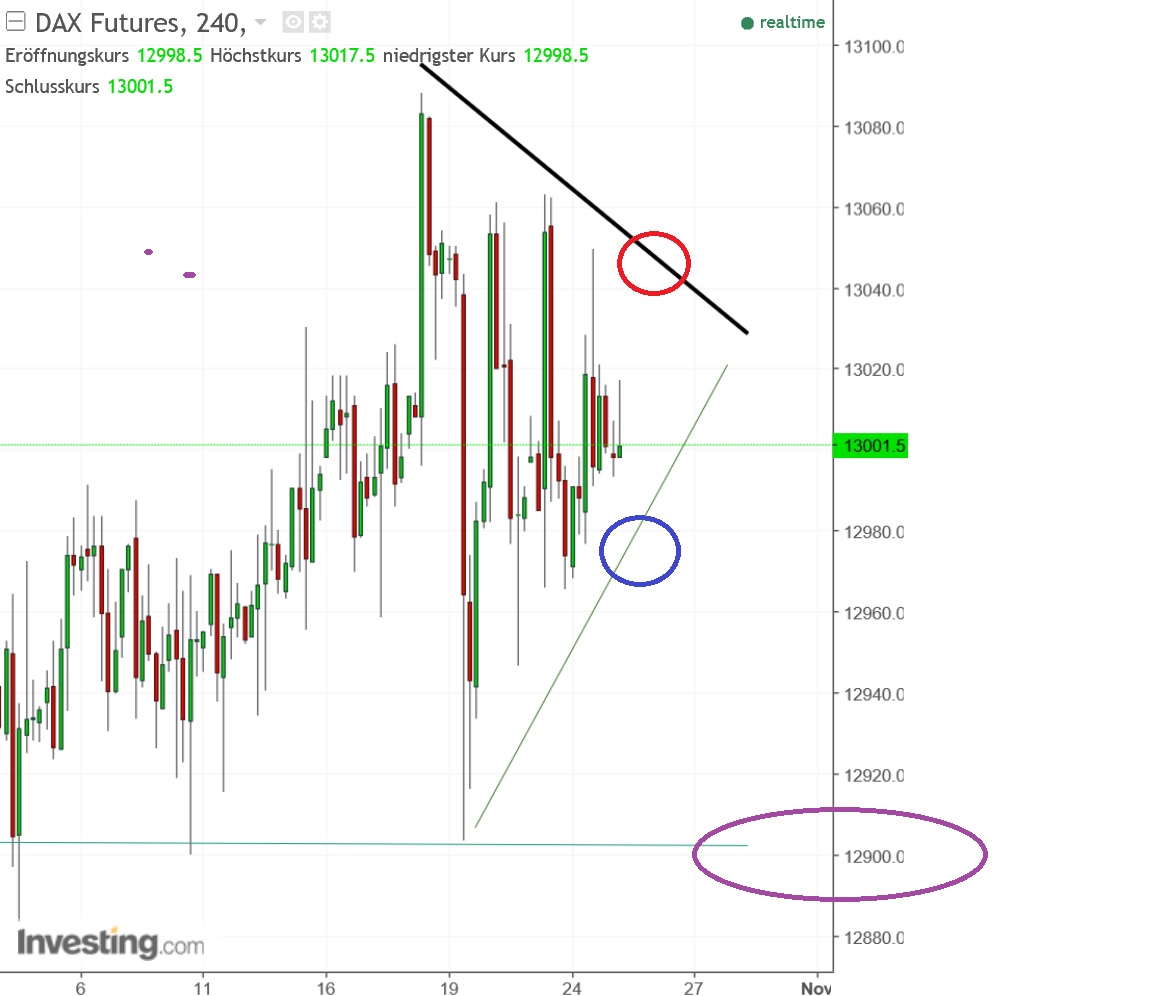 GDAXi aktuell bei 13001, schwarze Linie fallend bei 13050 - bin darüber long ..