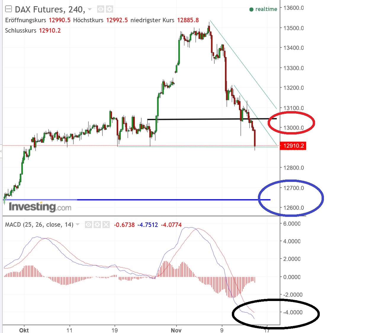 GDAXi aktuell bei 12985, schwarze Linie 13050 - bin darüber long ...