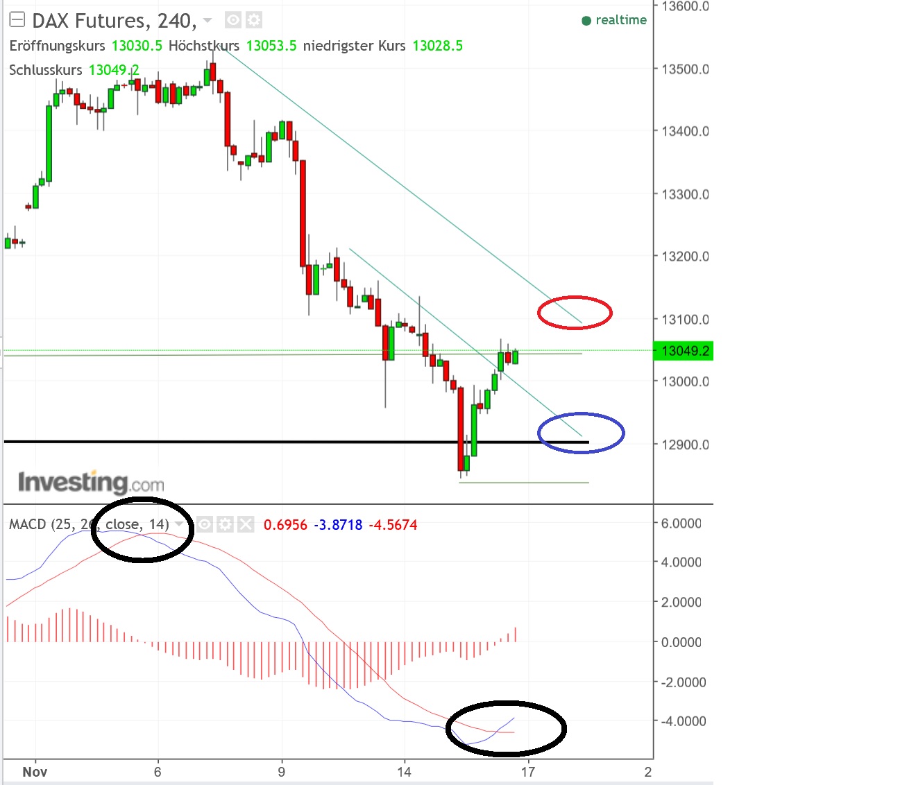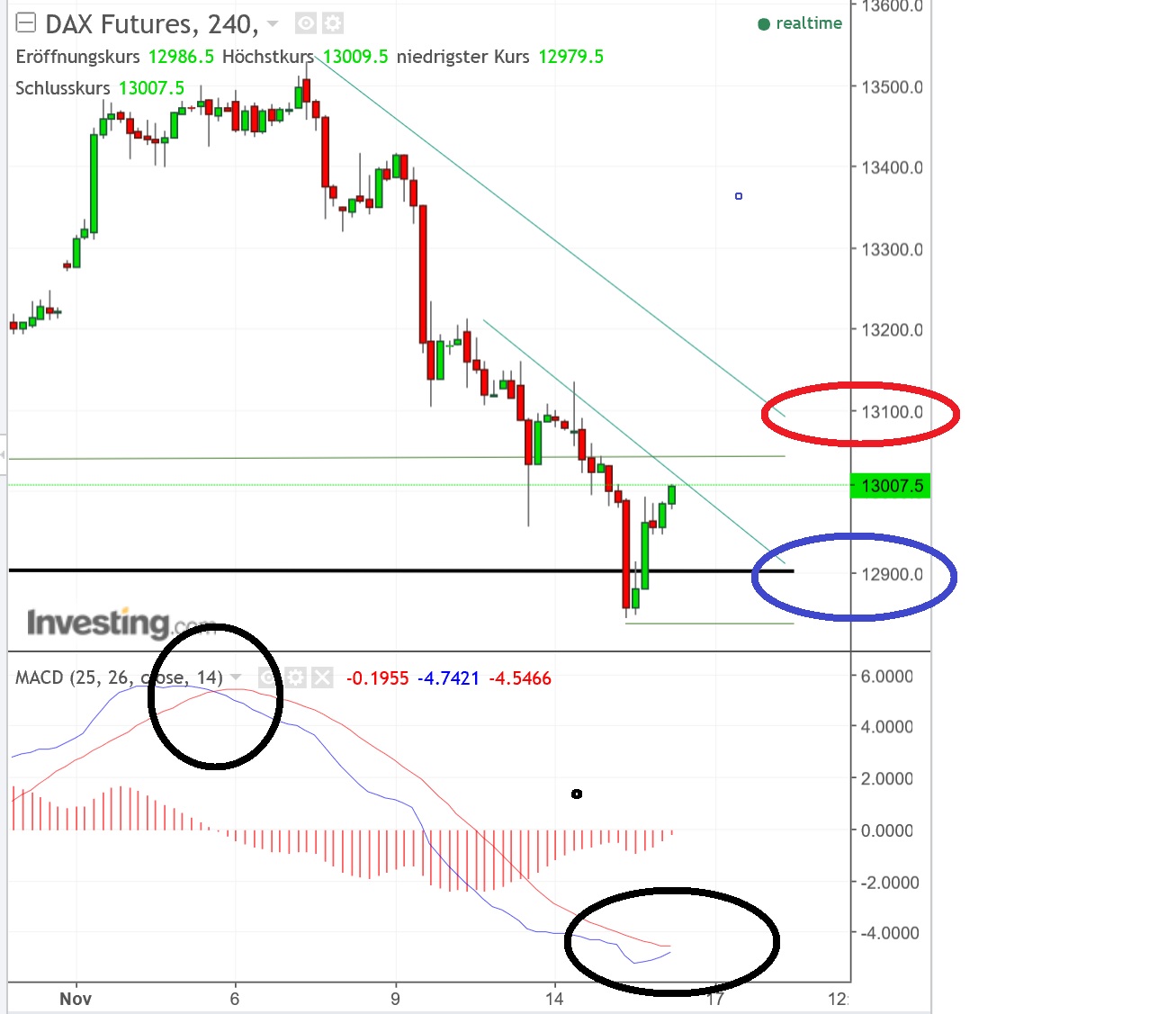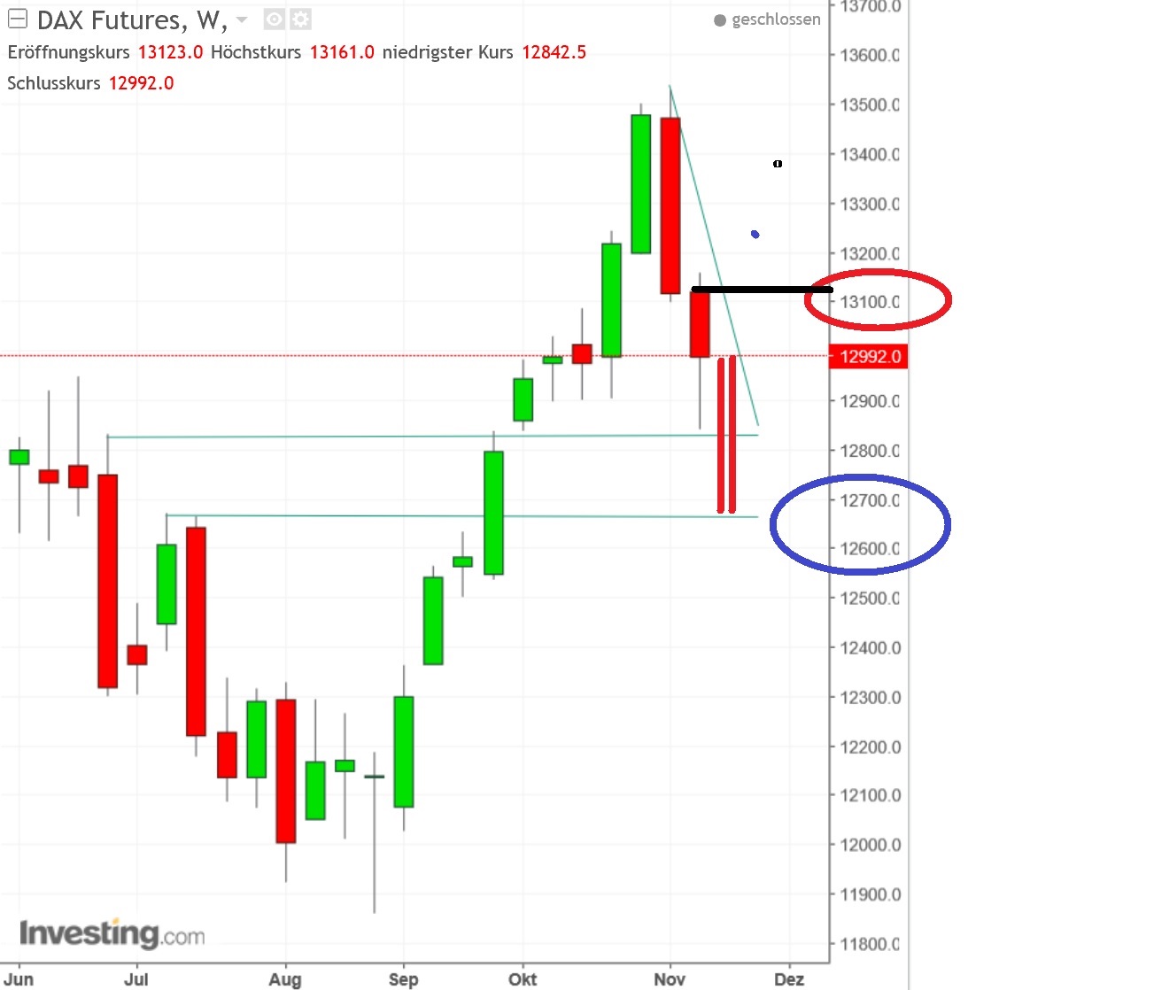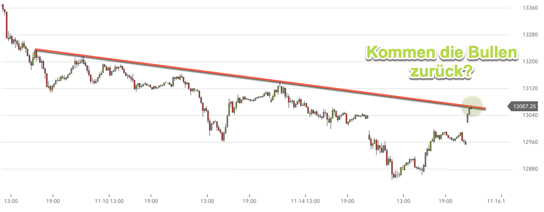 GDAXi aktuell bei 13007, schwarze Linie bei 12900 - bin darüber long ...