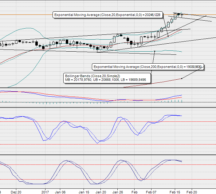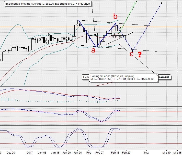 So richtig vom Fleck kommt der DAX® aktuell nicht mehr – und das obwohl die amerikanischen Aktienindizes zuletzt von einem Hoch zum nächsten eilten. Dass es gestern auch in den USA zu einer Atempause kam, macht die Ausgangssituation nicht besser. Aus charttechnischer Sicht dokumentiert der gestrige „inside day“, aber auch die Tatsache, dass die deutschen Standardwerte ein sog. „swing high“ ausgeprägt haben, den aktuellen Kontrollverlust der Bullen. Mit Blick auf den Stundenchart des DAX® besteht zudem die Gefahr der Ausprägung eines kleinen Doppeltopps, welches durch das bisherige Jahreshoch bzw. das jüngste Verlaufshoch bei 11.893/48 Punkten definiert wird. Deshalb sollten Anleger die 38-Tages-Linie (akt. bei 11.617 Punkten) als erste Unterstützung im Hinterkopf behalten. Wesentlich wichtiger ist allerdings das Tief vom 8. Februar bei 11.480 Punkten, das gleichzeitig als Nackenlinie des o. g. Doppeltopps fungiert. In diesem Zusammenhang möchten wir nochmals an die Bastion bei gut 11.400 Punkten erinnern, so dass man auch von einer Nackenzone sprechen könnte. Auf der Oberseite würde indes ein Spurt über die Verlaufshoch bei 11.848/93 Punkten die Bullen zurück in die Erfolgsspur bringen.
