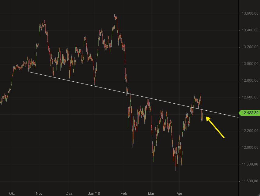 GDAXi aktuell bei 12488 - schwarze Linie fallend derzeit bei 12520 - bin darüber long ..