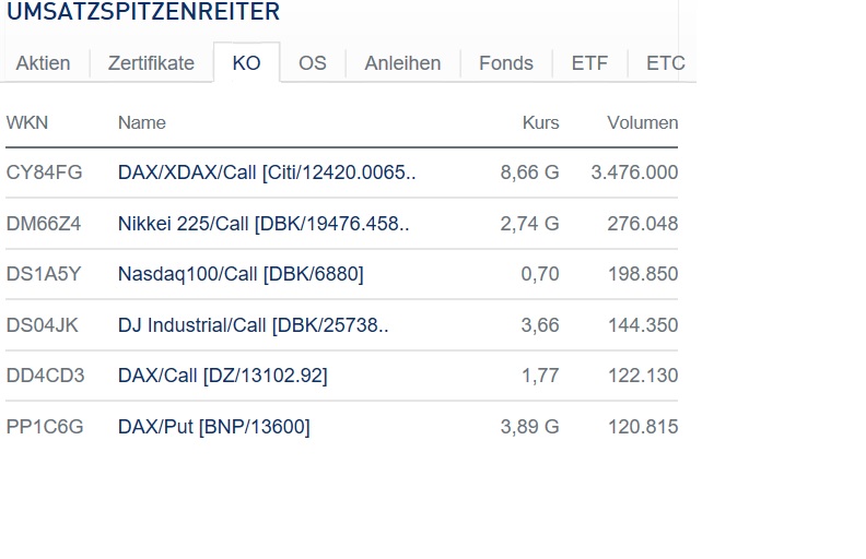 - alternativ: Oberhalb von 13525 und 13600 würden die Bullen wieder die Oberhand gewinnen, was aber noch einige Zeit unwahrscheinlich bleiben dürfte.