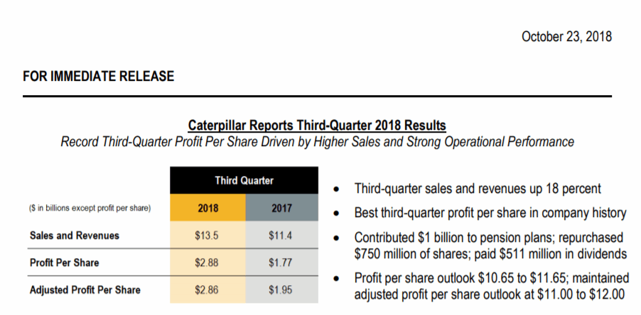 “This was the best third-quarter profit per share in our company’s history,” said Caterpillar CEO Jim Umpleby.