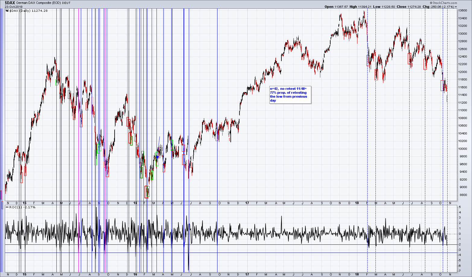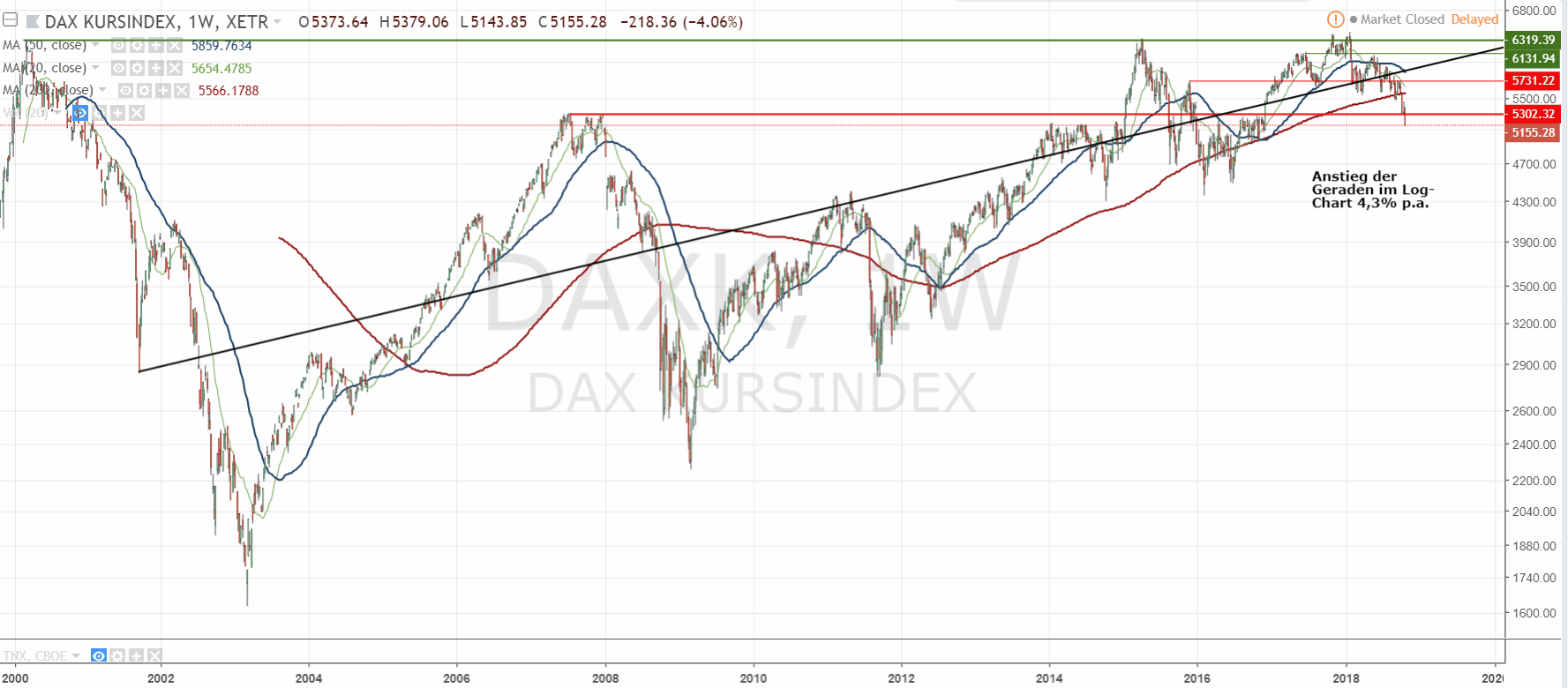 Die Richtung der US-Märkte ist m.E. vorgegeben. Es wird fallen. Noch versucht man Trend und 200-Tage-Linie zu verteidigen. Morgen wird man vielleicht nochmal Amazon-Zahlen als Sensationszahlen verkaufen, aber helfen wird das nur noch temporär. Wenn die US-Märkte auf aktuellem Niveau schließen, dann sind die Linien erstmal durch. Schauen wir dann noch ob das im Weekly am Freitag bestätigt wird. Der DAX wird sich nicht abkoppeln können. Währungsbereinigt ist die Underperformance auch nicht ganz so dramatisch für einen US-Anleger, der den Markt ja dominiert.