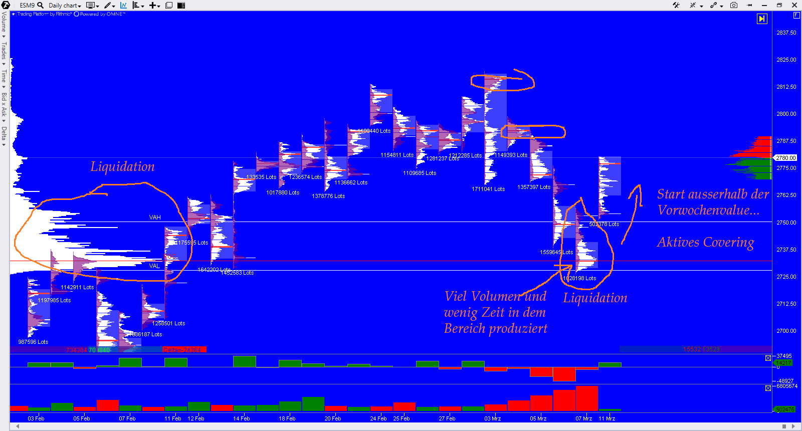 Tja - der Verfall wirft seine Schatten voraus. Ab Freitag werden die Karten neu ausgegeben - bis dahin: Offensichtlich LONG drüben (dax will da aber nicht mitmachen), obwohl ich mir das nicht erklären kann, denn die übergeordneten zeiteinheiten (4h / Tag) sehen nicht nach Long aus, werden aber gerade so hingebogen. Das ist aber nix Neues - insbesondere zum großen Verfall gibt es in meinen Charts häufiger Bewegungen, die sich indikatorentechnisch nicht erklären lassen. Um dann ab Freitag wieder "richtig gestellt werden". So lange heißt es für mich: Schnauze halten, Seitenlinie und warten.