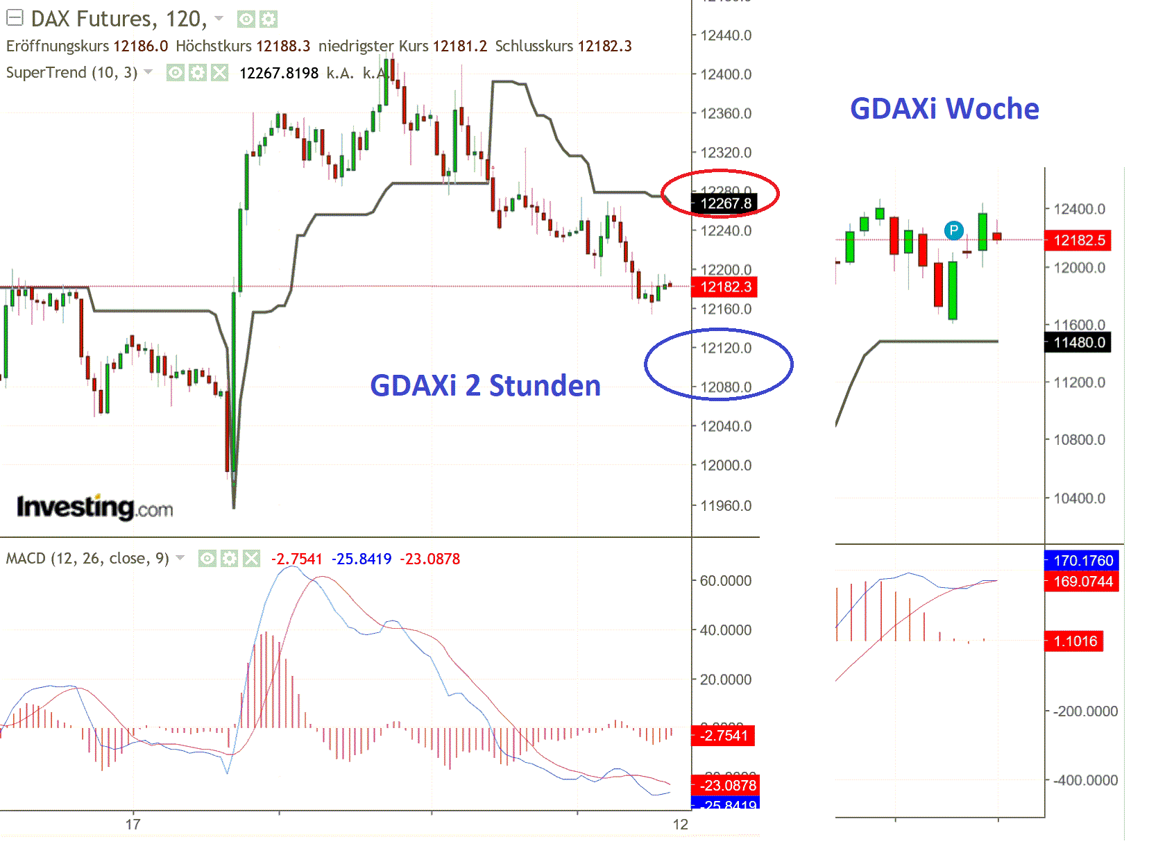 GDAXi aktuell im Short bei 12182, Wendepunkt nach oben bei 12280 ..