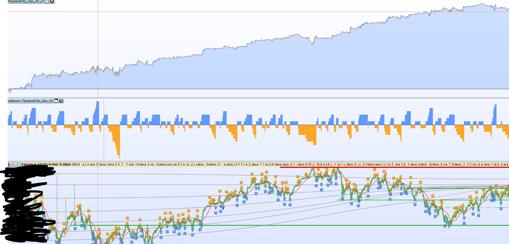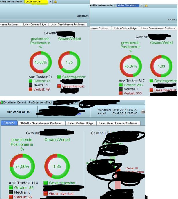 Das, was Prorealcode ausspuckt, ist mir zu wenig, da ich die einzelnen Instumente nicht gescheit ausweisen kann: wenn ich z.B. "Dax" in der Übersicht (das Bildchen ist für alle Bots) auswähle, kommen alle Bots auf den Dachs (2x M5, H1 & H4) in EINER Statistik verschwurbelt. Oder aber ich muss händisch nachzählen, wie viele Trades gefahren wurden, da die Statistik seit der letzten Versionsänderung zählt (das untere der drei Bildchen). Alles irgendwie dooph :-/