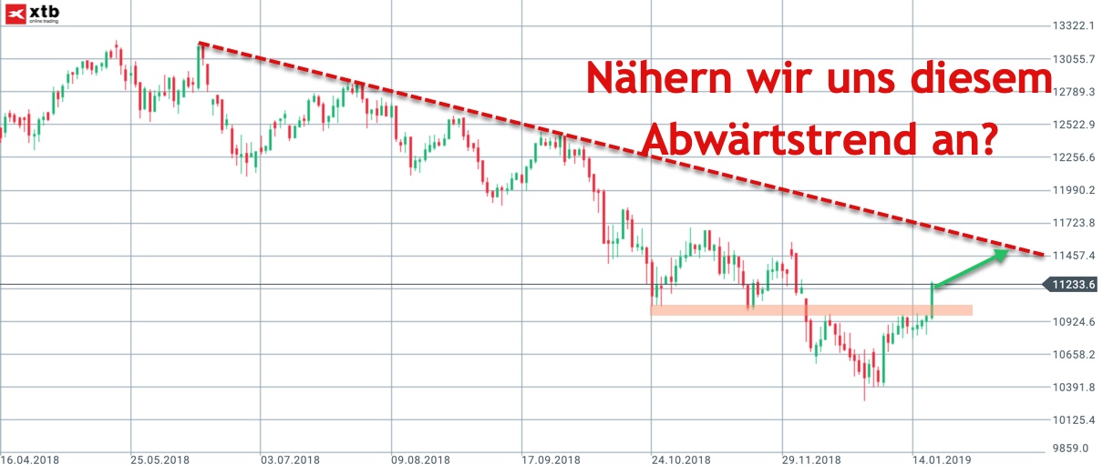 Der DAX® brach zum Wochenschluss aus dem 10.730/11.090 Punkte-Korridor nach oben aus. Die nächste Hürde findet der Index nun bei 11.640 Punkten. Unterstützung findet der Index im Bereich von 11.000/11.090 Punkten. Solange dieses Level hält ist der kurzfristige Aufwärtstrend intakt. Die Bären dürften frühestens unterhalb von 11.000 Punkten das Ruder übernehmen."