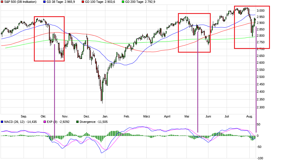 Auch wenn es diese Woche intraday bis unter 25.500 ging, zeigt der Bereich um 26.000 noch Unterstützungswirkung. Denn mit Ausnahme vom Montag konnte der Dow an jedem Tag zumindest über 26.000 schließen.