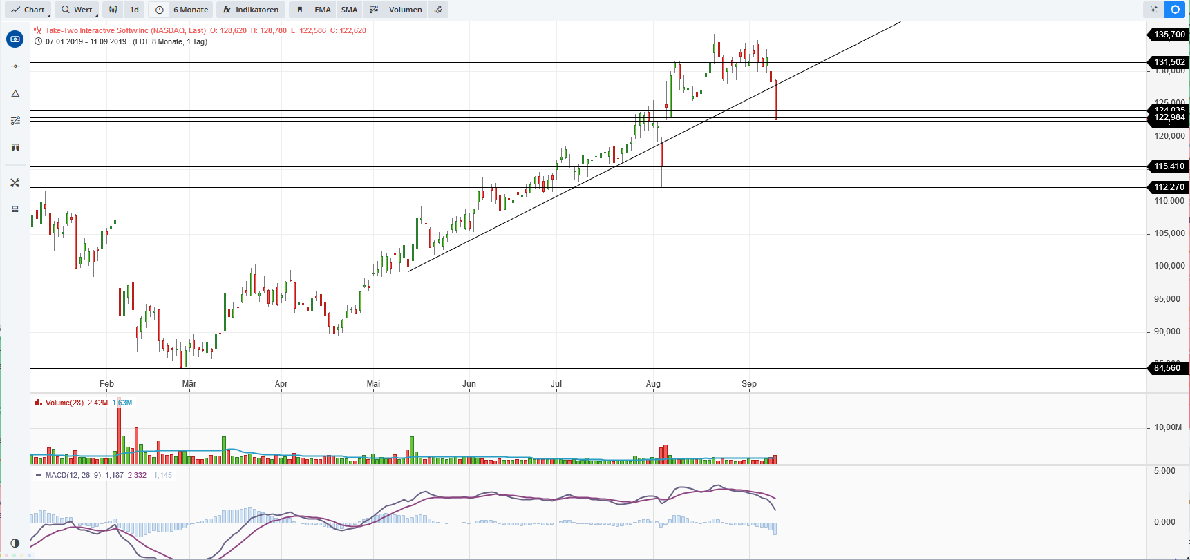 Betrachtungszeitraum: 05.07.2019 – 11.09.2019. Historische Betrachtungen stellen keine verlässlichen Indikatoren für zukünftige Entwicklungen dar. Quelle: tradingdesk.onemarkets.de