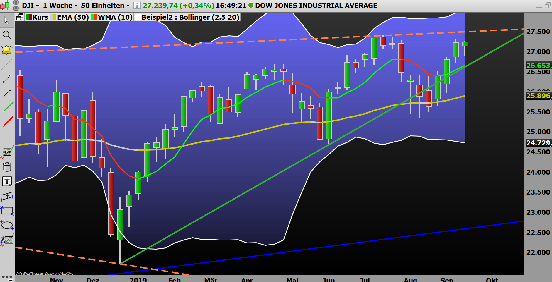 Kursverlauf vom 09.06.2019 bis 19.09.2019 (log. Kerzenchartdarstellung / 1 Kerze = 1 Tag)