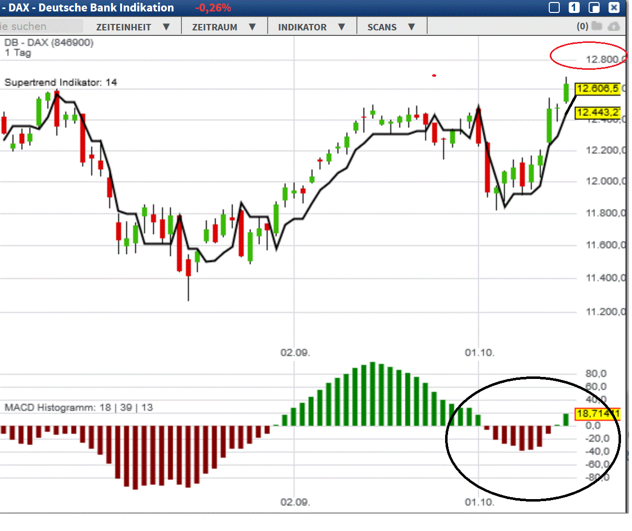 GDAXi abwartend, long ab 12640, short ab 12580