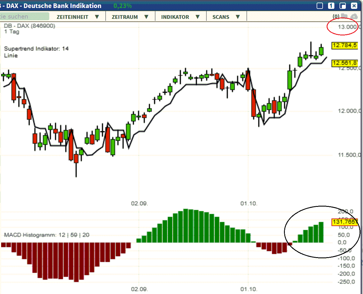 Widerstandsmarken: 12.800/12.860/13.180 Punkte