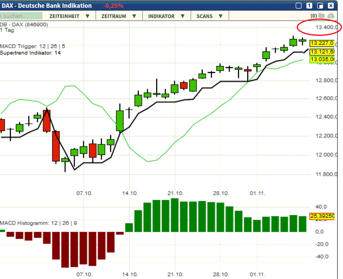 DAX Widerstände: 13223/13243 + 13300 + 13392 + 13433 + 13515