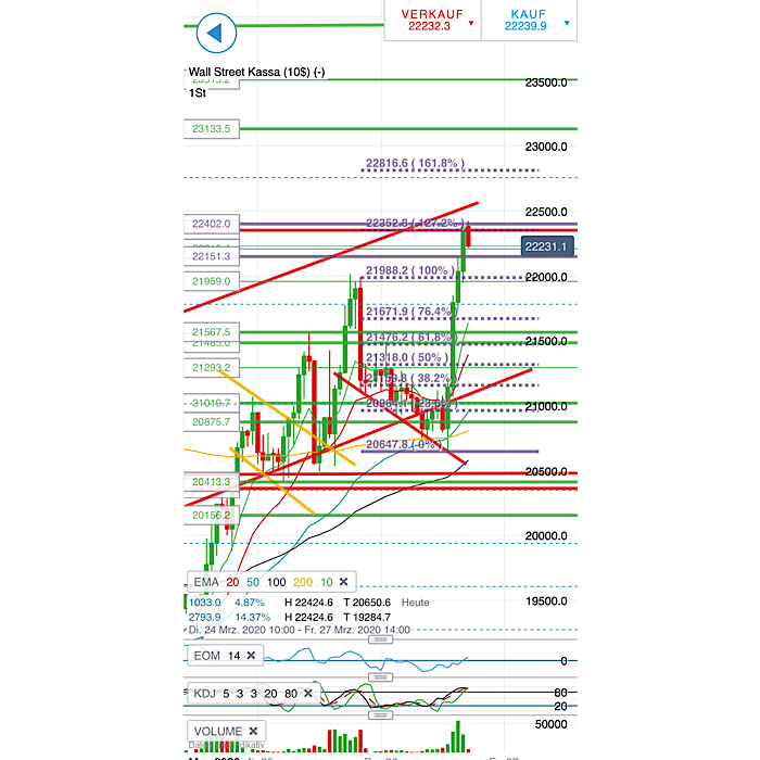 Ein Umkehrsignal (1, 2 und 4h wäre möglich) wäre jetzt ganz nett. Ganz unschlüssig wäre es hier nicht (127er + hor Widerstand) wenngleich ich eher mit 22550 gerechnet hätte.