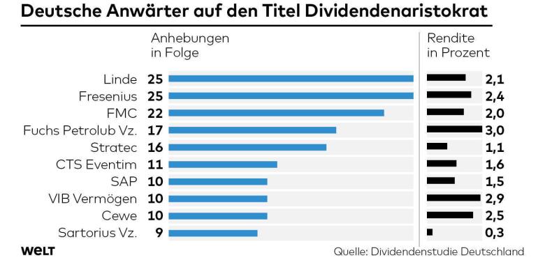 Bei dem Gesundheitskonzern Fresenius erwartet Anteilseigner eine Dividendenrendite von 2,4 Prozent, die Tradition der jährlichen Steigerung ist ebenso makellos wie bei Linde.