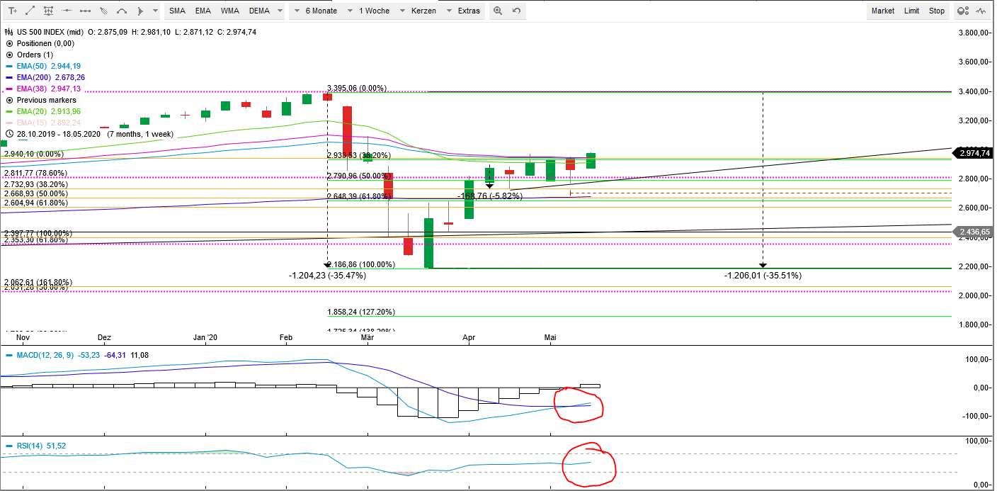 Der S&P 500 sollte gestern auf 2.944 Punkte fallen und anschließend neue Hochs markieren. Ersteres setzte der Index gut um, für neue Hochs reichte die Power der Käufer aber nicht aus.