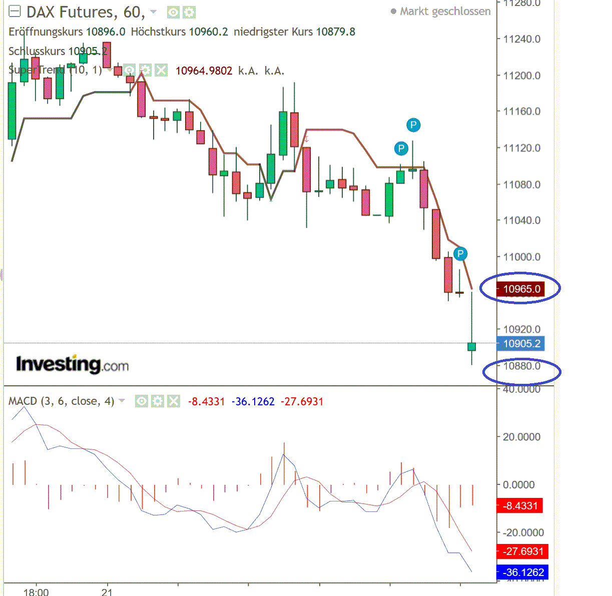 DAX Unterstützungen: 10870/10850 + 10750 + 10575/10550
