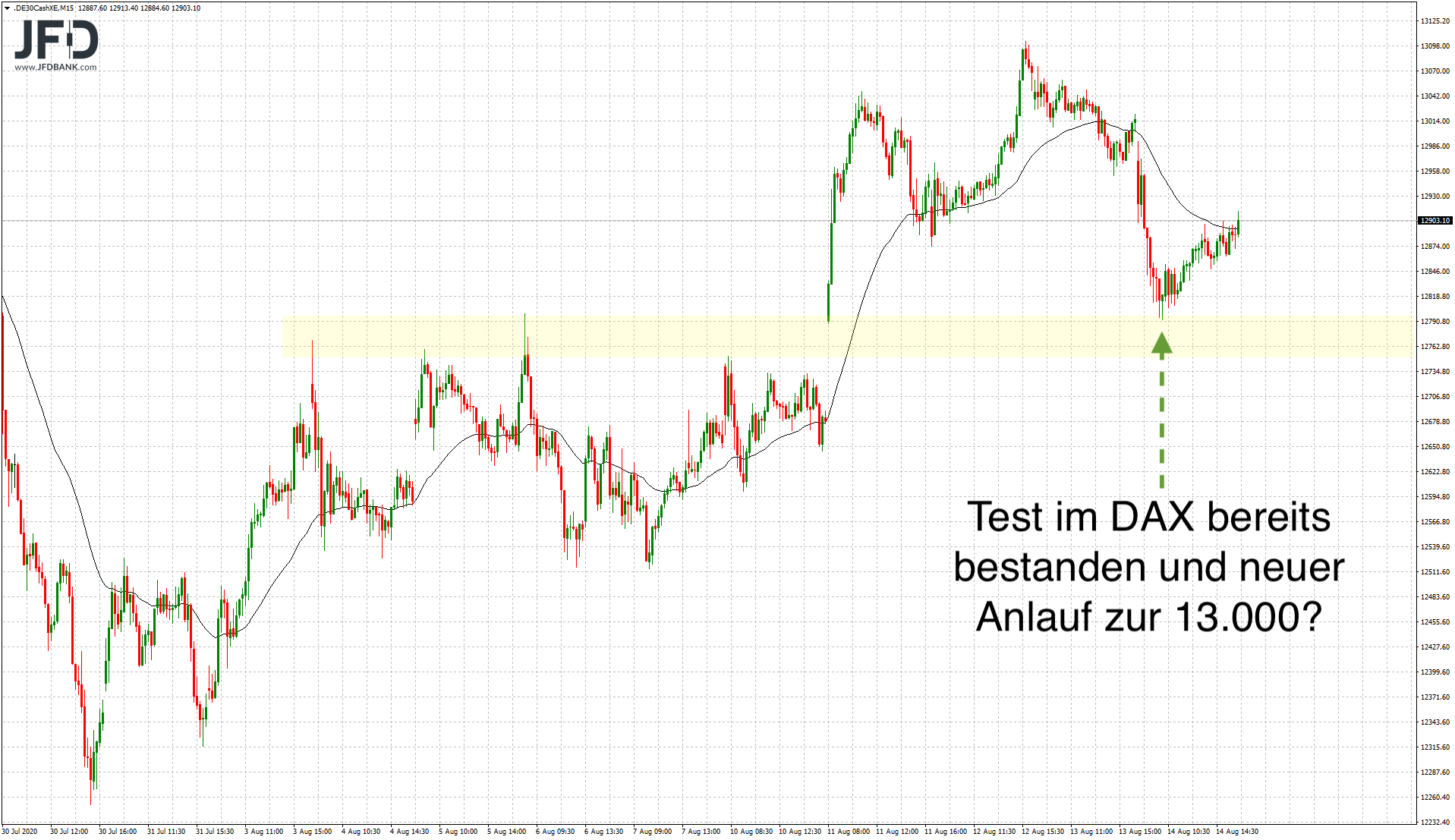 "In der gestrigen Analyse zum DAX® wurde bereits betont, dass es kurzfristig zu viele Varianten gebe und nach dem Gapclose bei 13.073 Punkten die Marktteilnehmer erst einmal zufrieden sein dürften. Diese vorsichtige Haltung hat sich spätestens heute ausgezahlt. Denn der Index muss im bisherigen Freitagshandel kräftig Federn lassen.