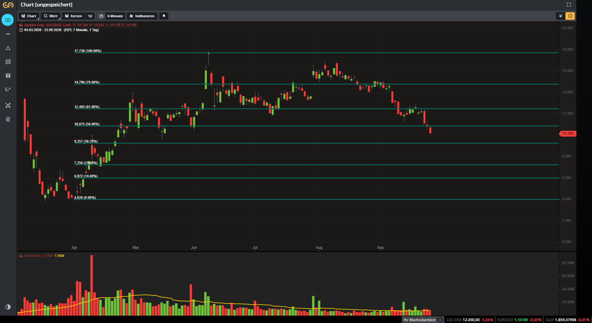 Kursverlauf vom 06.07. bis 28.09.2020 (log. Kerzendarstellung / 1 Kerze = 1 Stunde)