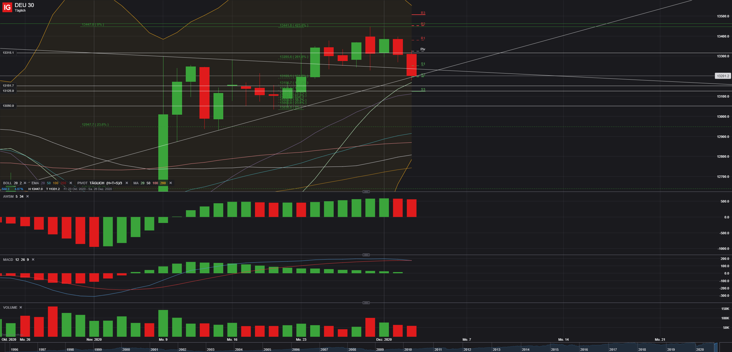 Widerstandsmarken: 13.300/13.320/13.370/13.440/13.460 Punkte