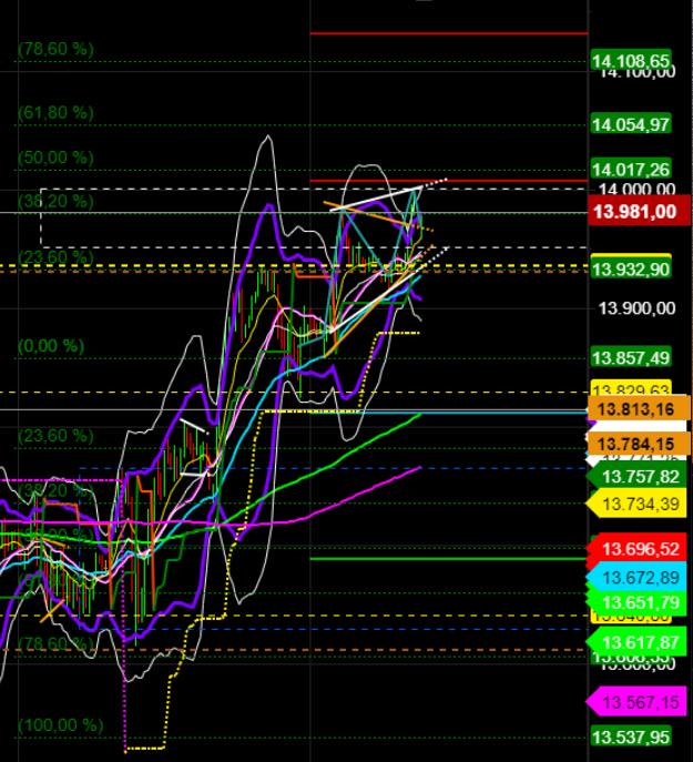 DAX Unterstützungen: 13905/13892 + 13821/13800 + 13742 + 13686 + 13600 + 13450