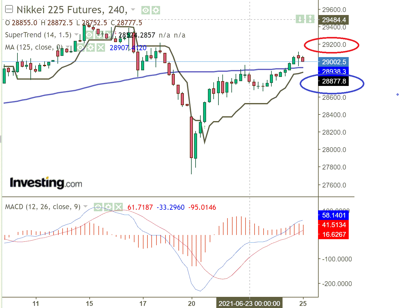 Die Hürde bei 4.257 Punkten ist auch im heutigen Handel relevant. Interessant: Selbst bei neuen Allzeithochs wäre der Weg noch nicht gänzlich frei. Die Bullen müssen eine Deckelung im Chart bei rund 4.263 Punkten aufbrechen, erst dann dürfte sich die Rally beschleunigen. Rücksetzer treffen vorrangig um 4.235 Punkte auf einen Support. Darunter bleibt es bei den Horizontalen bei 4.219 und 4.210 Punkten."
