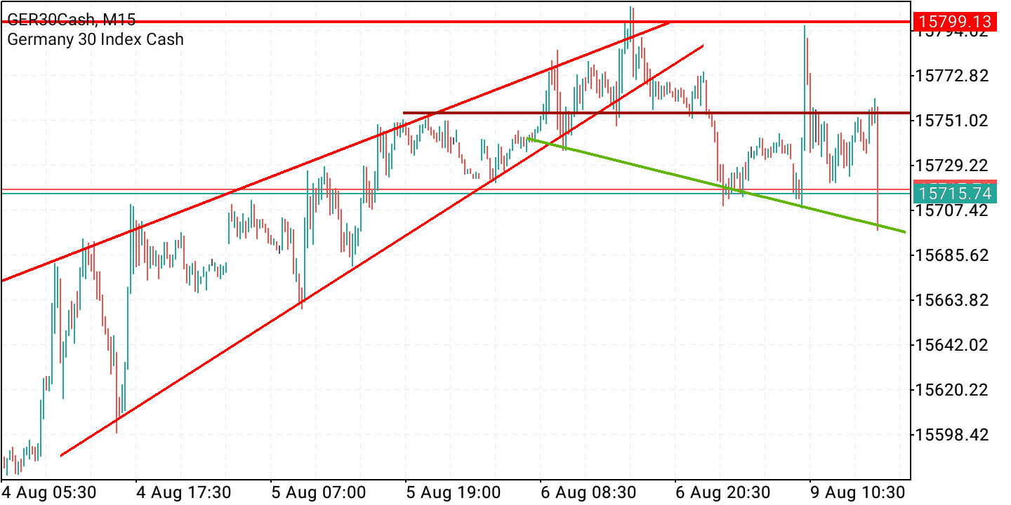 Der DAX kam dann an der markanten Horizontalen bei 15803/15811 nicht weiter.