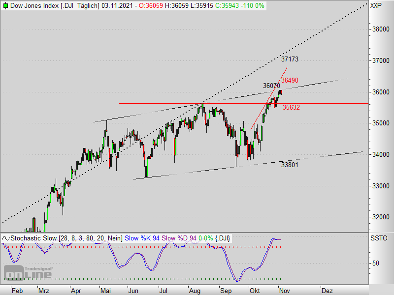 Der DAX® verlor etwas von seinem gestrigen Schwung . Setzte sich allerdings deutlich über der Marke von 15.900 Punkten fest. Der Aufwärtstrend bleibt somit intakt und das Allzeithoch in greifbarer Nähe. Unterstützung findet der Leitindex zwischen 15.800 und 15.900 Punkte."