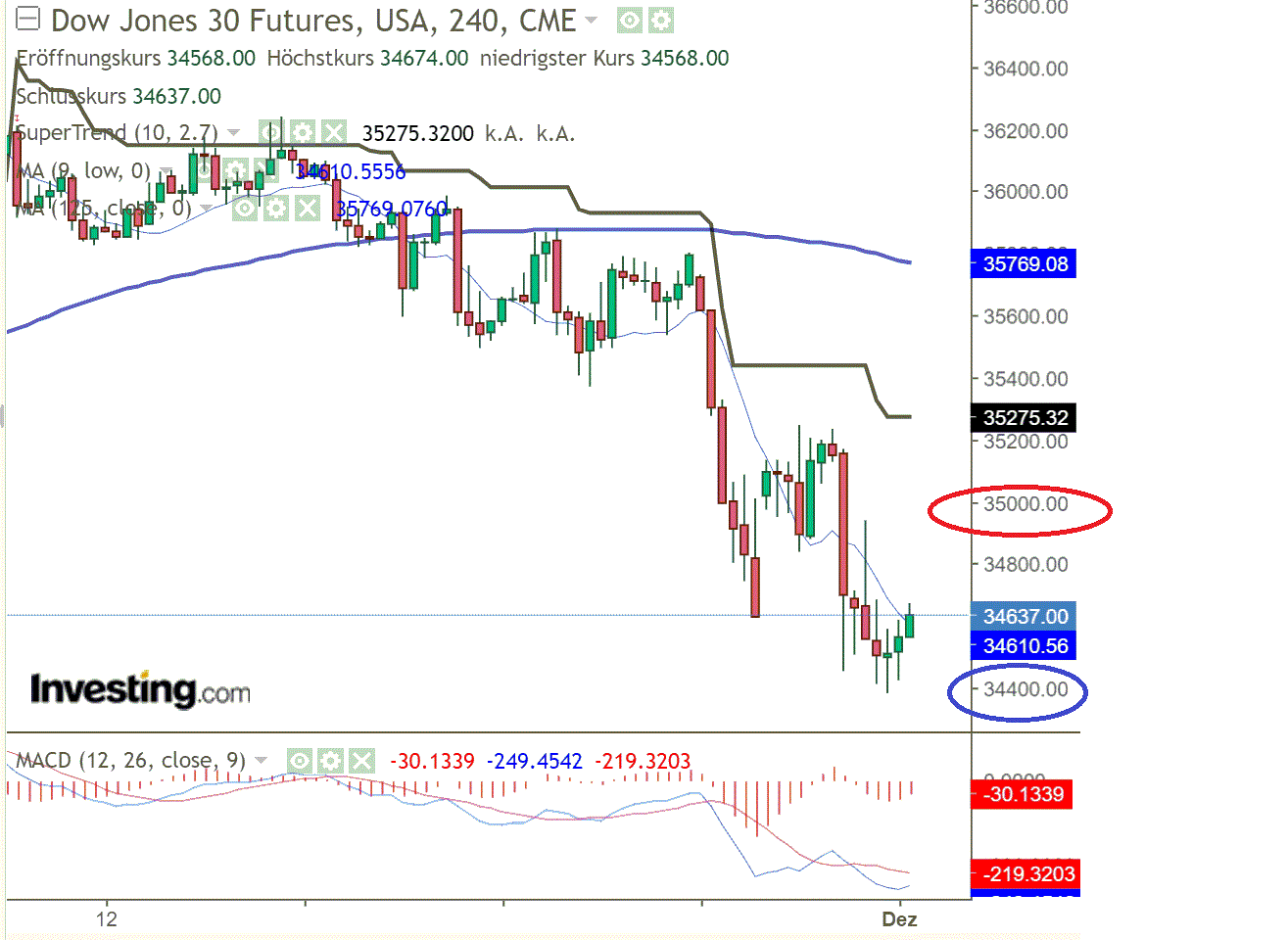 "Der Dow Jones überwand im gestrigen Handel zunächst die Marke von 35.150 Punkten, blieb auf halbem Weg in Richtung 35.500 Punkte aber stecken. Es entstand bezogen auf den Freitagshandel eine klassische Inside-Kerze.