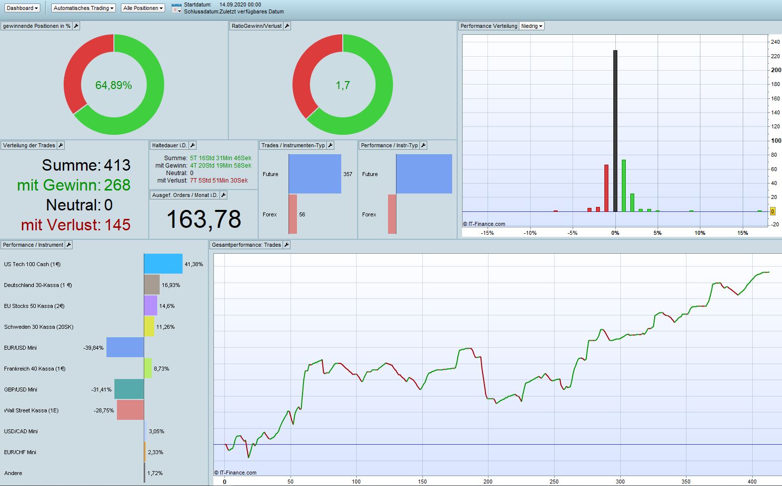 Gewinntrades (letztes update / heute, in %): 63,x / 64,x