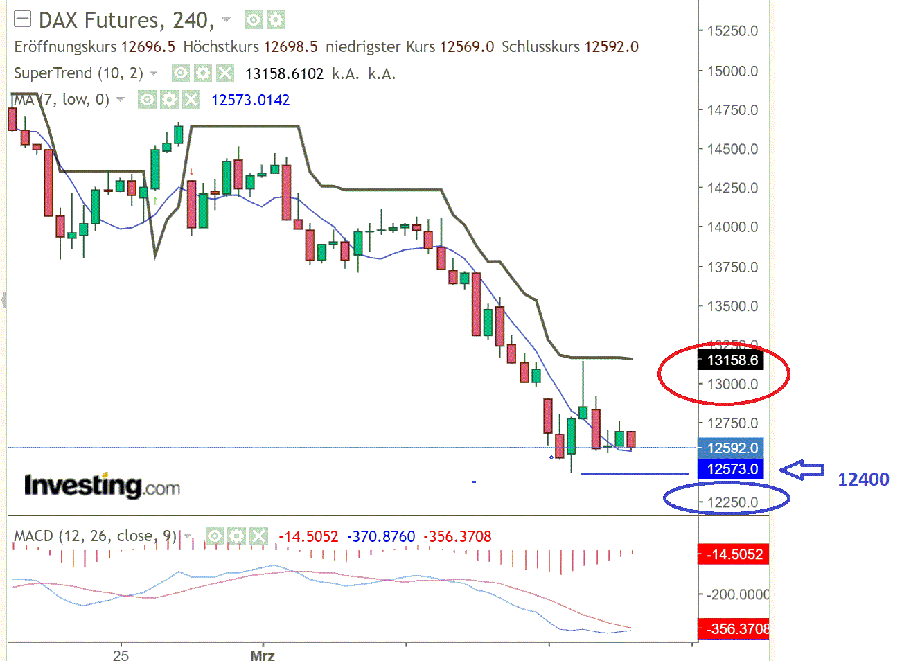 Kurzfristig: Meine Shorts auf den DOW habe ich gestern mit der Schlussglocke geschlossen. Overnight halte ich nach wie vor für wenig sinnvoll wenn man mit größeren Hebeln arbeitet. Wer weiss was passiert. Eine positive Nachricht, Schließung der Börsen, alles ist möglich. Natürlich sah das heute morgen so aus, dass es ein Fehler war, aber damit muss man leben. Es sieht ja momentan so aus, dass es jetzt wie gestern eine Gegenbewegung gibt.