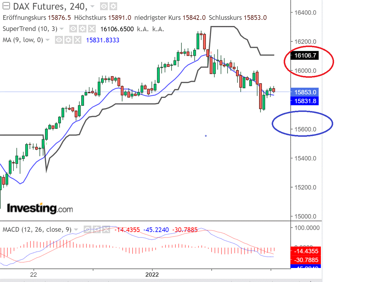 DAX Unterstützungen: 15869 + 15822/15800 + 15752 + 15672 + 15578