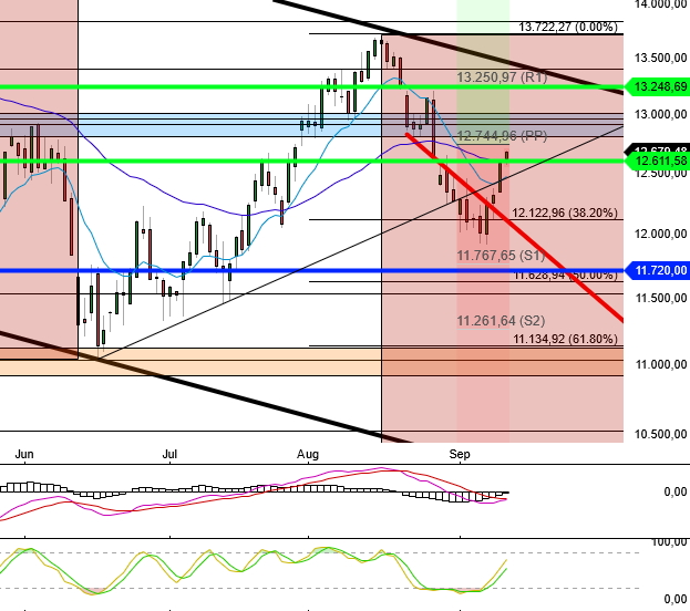 Sollt der DAX die Bewegung heute zunächst fortsetzen könnte er 13228/13310/13335/13434 anlaufen. Aus meiner Sicht wäre ein vorläufiges Hoch bei etwa 13310 ideal um hier eine Korrektur unter 13000 zu beginnen. Später könnte eine zweite Aufwärtsstruktur erneut Richtung 13434/13653/13927 streben.