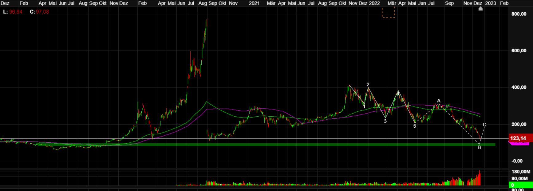 Fällt er dagegen unter 32.500, wird vermutlich zunächst die 32.000 getestet. Von dort könnt es wiederum ebenfalls aufwärts gehen bis zu den genannten oberen Zielen.