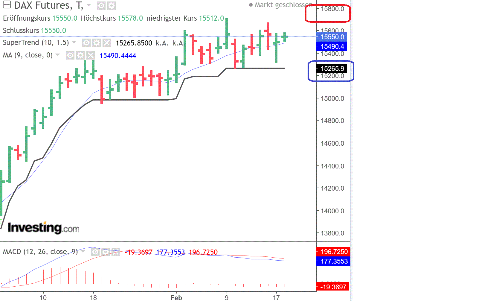 Widerstandsmarken: 15.500/15.600/15.600/15.650/15.840/16.270 Punkte
