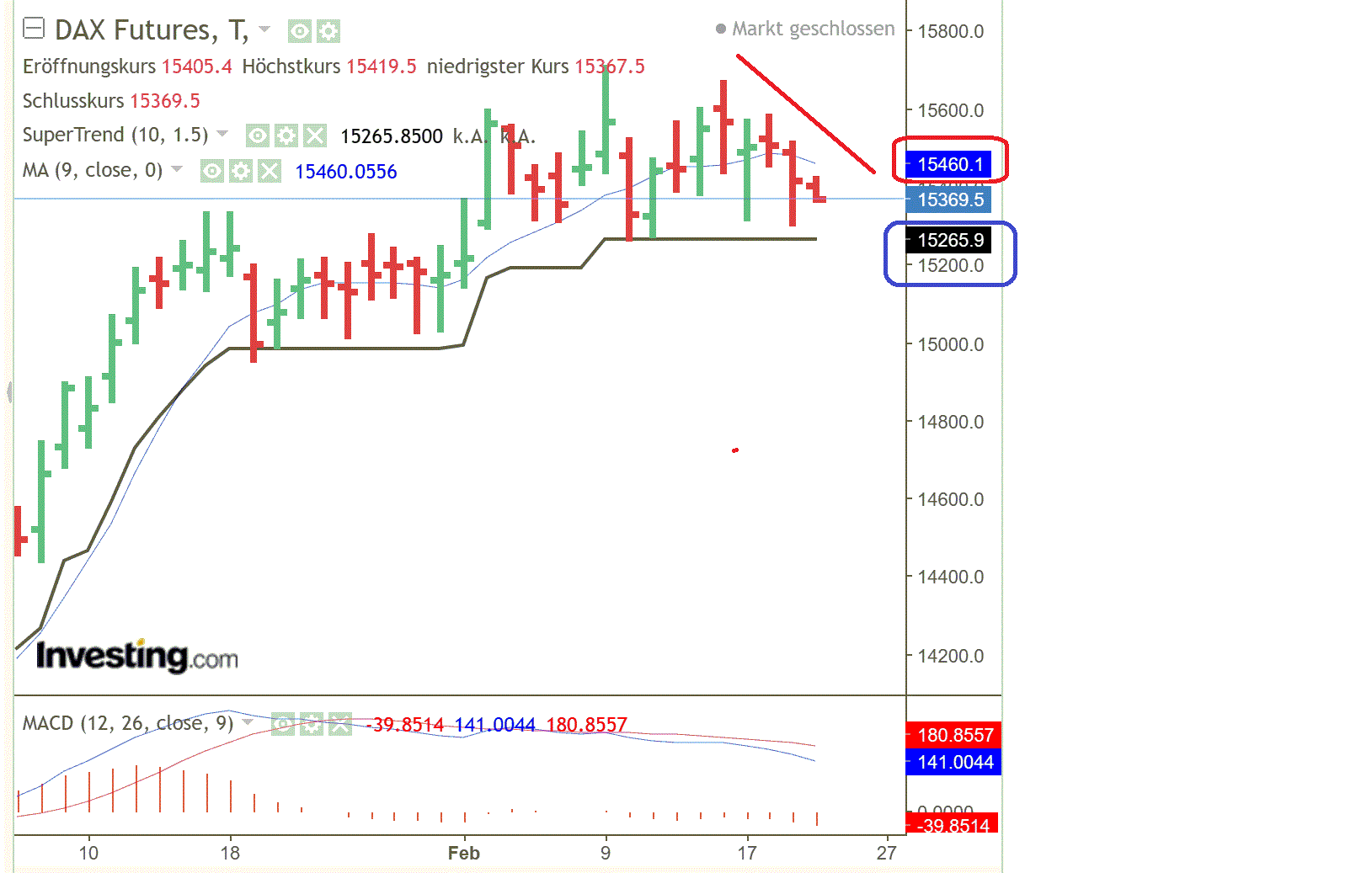 DAX Performanceindex Widerstände: 15400 + 15450 + 15521 + 15554 + 15659/15667(R3)