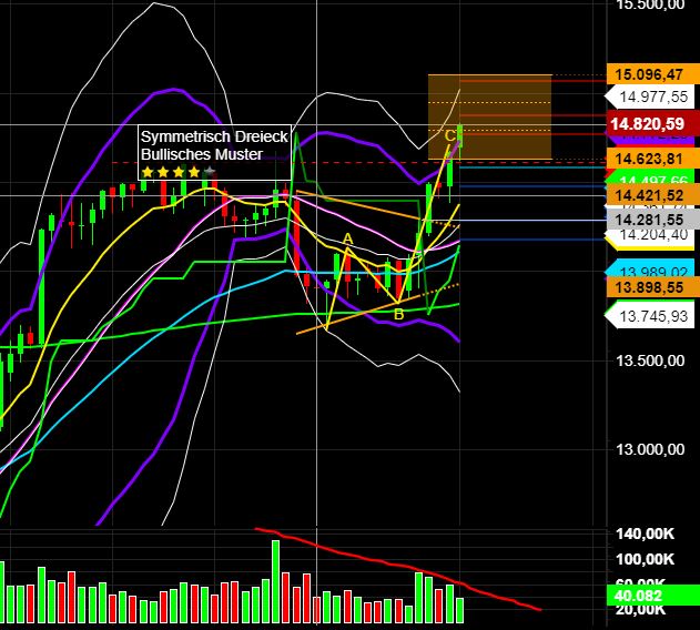 Damit ist der Index direkt in einer Widerstandszone aufgeschlagen, die er erst einmal überwinden muss. Lässt der Index 3.906 bis 3.918 Punkte hinter sich, könnte er in Richtung 3.975 Punkte steigen. Bei 3.965 Punkten hätte er auch ein Gap im Tageschart zu schließen. Rücksetzer in Richtung 3.878 Punkte wären unbedenklich. Auch ist der Index nun um 3.855 Punkte gut unterstützt."