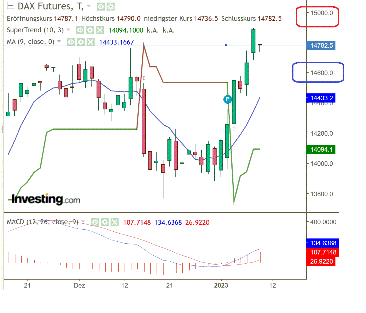 Widerstandsmarken: 14.810/15.430/16.170 Punkte