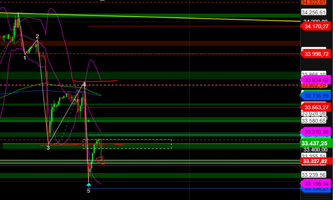 Prinzipiell ist die Lage unverändert zu gestern. Wie der Chart zeigt, könnte der DAX eine weitere Welle aufwärts in Richtung 15895 bringen und von dort noch einmal abwärts drehen. Überspringt der DAX die 895 wäre ein Test der 16011 möglich und bei Ausbruch darüber kann es weiter in Richtung 16127/16290/16387 gehen. Unterhalb von 15707 könnte sich die Korrektur weiter in Richtung 15591/15488/15402 oder unter 15240 ausdehnen."