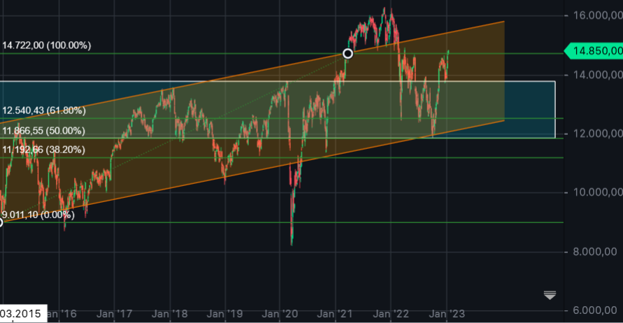"Der DAX strebte wie angenommen in Richtung des 62er retracement bei 14815 und erreichte ein Hoch bei 14832.