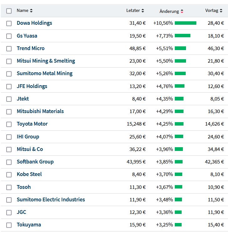....so weit ich das auf die schnelle überblicke, ziehen da die Rohstoffwerte das Dingen immer weiter. Buden von denen ich noch nie was gehört habe - abber, das heisst ja nix. Diese GS Dingensda hatten gestern schon über 10% plus. Irgendwas mit Lithium...