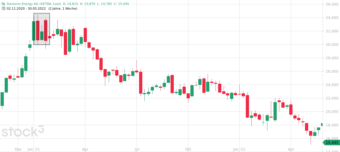 Kursverlauf vom 25.01.2023 bis 17.07.2023 (log. Kerzenchartdarstellung / 1 Kerze = 1 Tag)