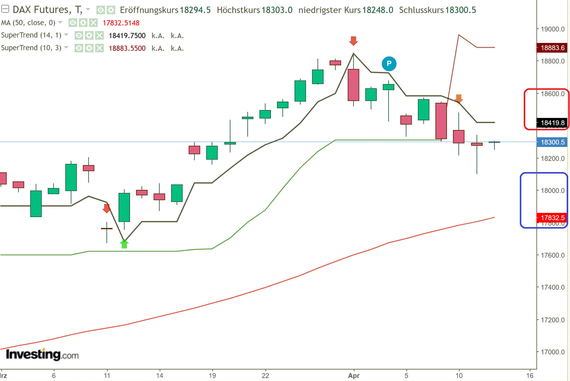 Der Index kam vom Monatshoch 18567 ziemlich genau 700 DAX Punkte, bis auf 17865 herunter.