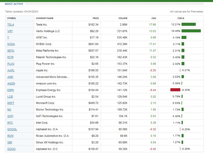 Aber ist wirklich alles gut? Die Zinsen sind nicht gesunken. Der Bundfuture hat ein neues Jahrestief gemacht. Die Amerikaner haben sich gestern mal so nebenbei knapp 70 Milliarden am Markt besorgt. Und mal wieder über 100 Mrd. für die Unterstützung in diversen Krisenregionen bereitgestellt. Wir reden da von einer Summe, die oberhalb des deutschen Wehretats liegt. Am Aktienmarkt scheint das nicht zu interessieren, das Spiel geht von vorne los, könnte man denken. Aber kann der Markt auf Dauer ein höheres Zinsniveau verkraften? Darf der Staat so viele Schulden machen wie er will? Ich kann es nur wiederholen, dass Wachstumsaktien eigentlich fallen müssten bei steigenden Zinsen; wir sehen hier seit Monaten eine gewaltige Abkopplung. Wir sind jetzt in einem Bereich gelandet wo es sich zeigen muss ob es weiterlaufen kann. Nvidia ist bisher nicht mehr als zur Abbruchkante zurückgelaufen; man kann sagen gespurtet. Das gilt auch für ASML und auch der Nasdaq ist noch nicht sauber. Da fehlt noch was. Mit Tesla hat gestern ein Schwergewicht berichtet. Noch schlechter als die ohnehin nicht hohen Erwartungen. Da schneiden momentan die traditionellen Autobauer besser ab. Aber was macht Tesla? Die Aktie steigt. Die Elon Musk Jünger glauben scheinbar, dass wir einen einmaligen Ausrutscher gesehen haben. Für mich ergibt sich hier die nächste Shortchance. Wer Mut hat shortet auch Nvidia an der Abbruchkante.