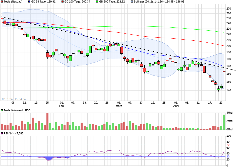 Die Deutsche Börse legte Zahlen für das abgelaufene Quartal vor und konnte dabei die Konsensprognosen der Analysten leicht übertreffen. Die Aktie drehte im Tagesverlauf jedoch ins Minus. Nach einem schwierigen Jahr 2023 will der Wirkstoffforscher und -entwickler Evotec wieder profitabel wachsen. Zudem ist mit Christian Wojczewski ein neuer Konzernchef gefunden. Die Biotech-Aktie gab dennoch zweistellig nach. Aixtron, Elmos Semiconductor und Infineon profitierten von den soliden Geschäftszahlen von Texas Instruments. Teslastartete mit einem Kurssprung nach den gestern veröffentlichten Zahlen.