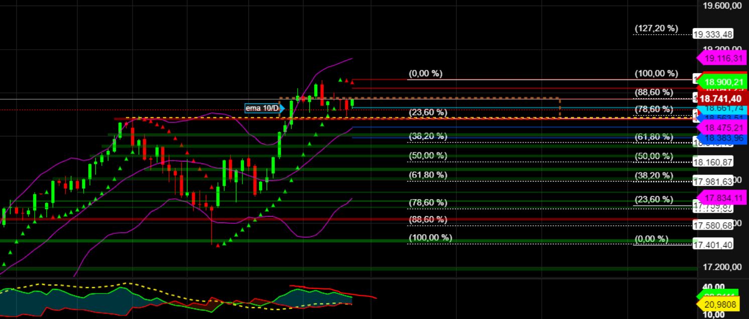 Gestern wurde dabei zum 4. Mal die untere Range-Begrenzung bei ca. 18650/18635 getestet.