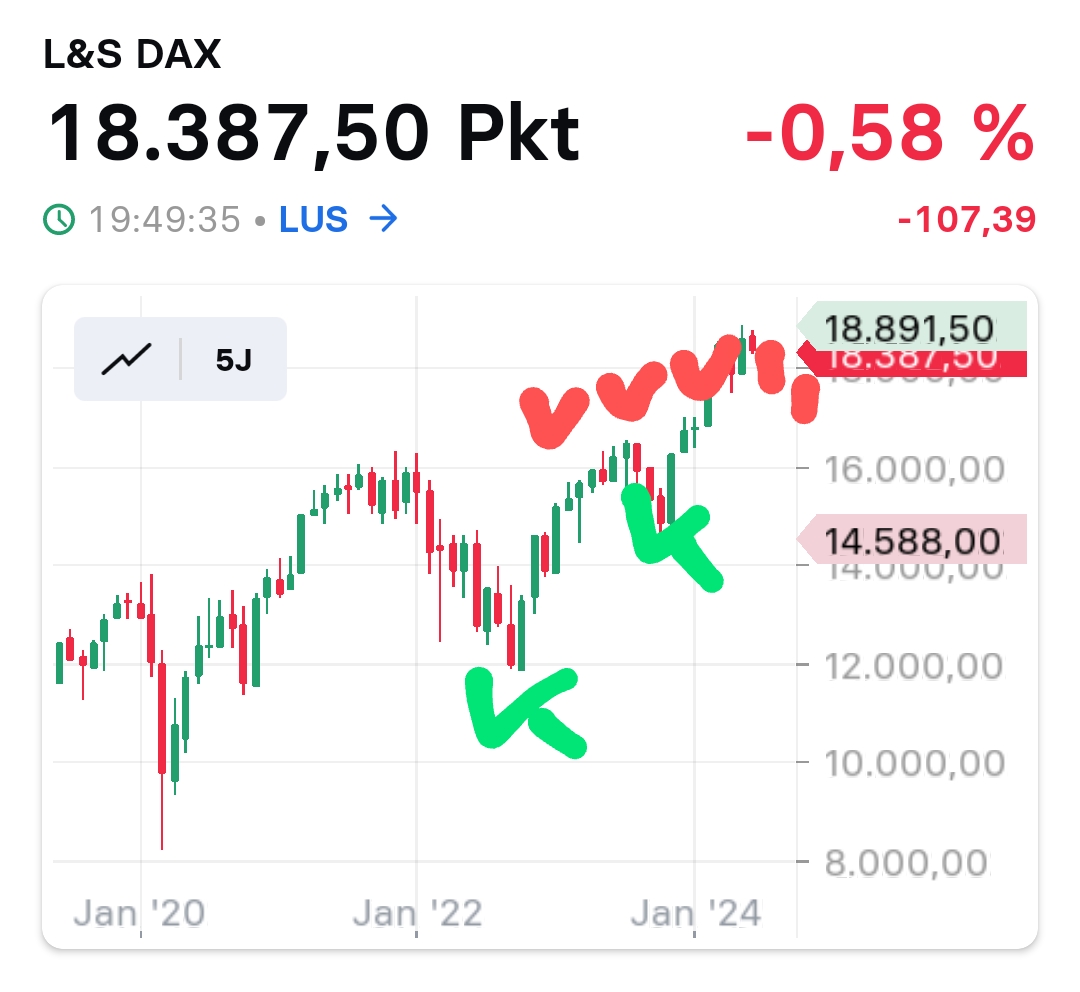 wie einfach Börse sein kann....... Mache das jetzt auch mal zu zweit und richte einen zahlungspflichtigen Kanal ein. Meine Liebste muss nur daneben sitzen, während ich von der richtigen Richtung der Indizes träume.