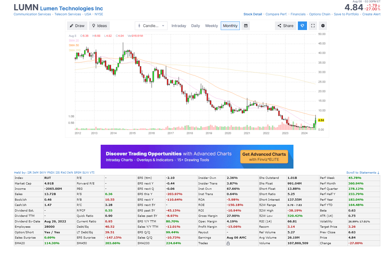 "Mit einem Glasfasernetz von 450.000 Kilometern Länge, darunter mehr als 35.000 Kilometern an Unterwasserglasfasern, die Europa, Asien und Lateinamerika miteinander verbinden, ist Lumen Technologies einer der größten Telekommunikationsanbieter in den Vereinigten Staaten, der globale Unternehmen bedient. Durch den Zusammenschluss mit Level 3 hat sich das Unternehmen weiter auf Unternehmen (mehr als 70 % des Umsatzes) und weg von seinem alten Privatkundengeschäft verlagert. Lumen bietet Unternehmen ein komplettes Menü an Kommunikationsdiensten: Colocation- und Rechenzentrumsdienste, Datentransport sowie Telefon- und Internetdienste für Endbenutzer. Im Privatkundengeschäft bietet Lumen Breitband- und Telefondienste in 37 Bundesstaaten an, wo das Unternehmen 4,5 Millionen Breitbandkunden hat."
